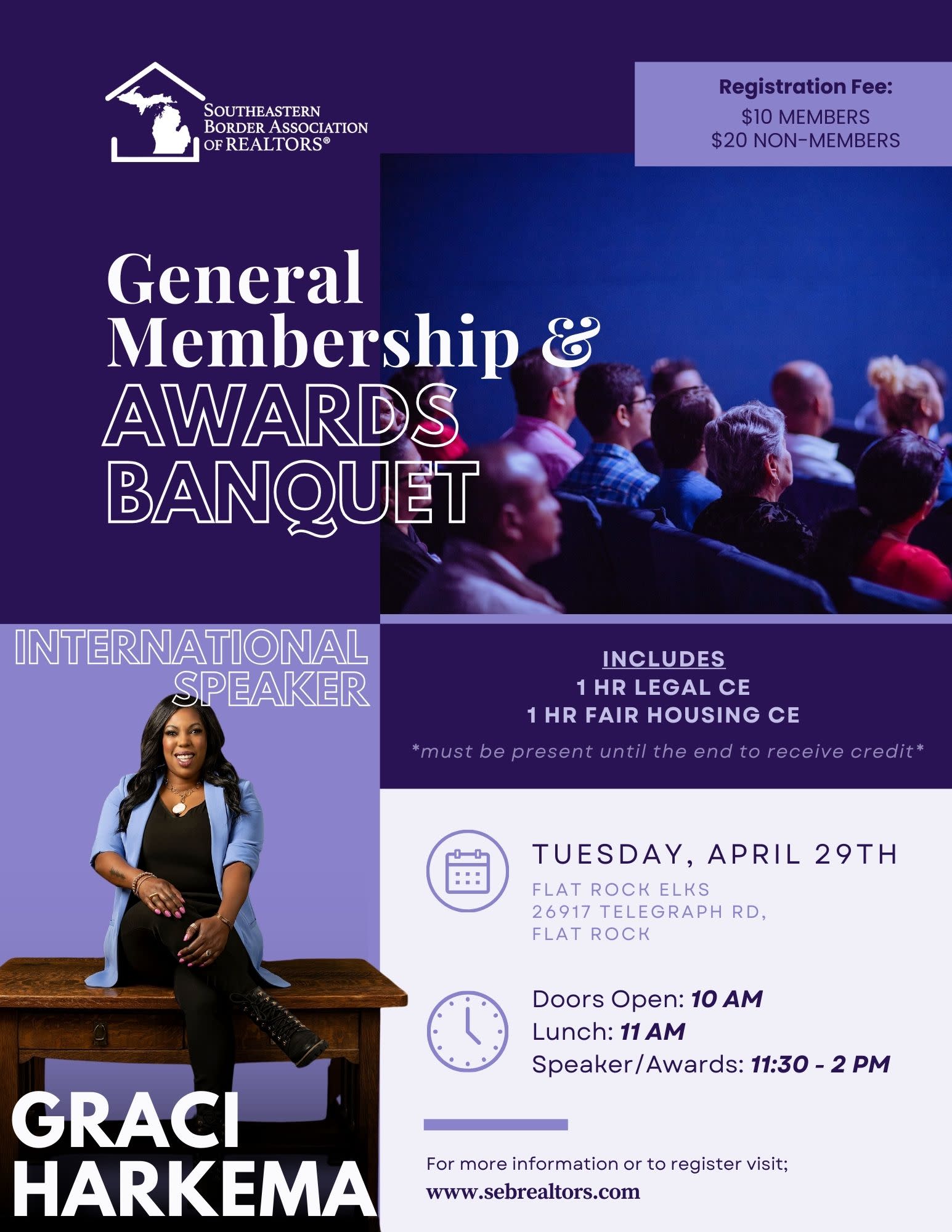 Registration: 10:30 AM, Lunch: 11 AM, Speaker/Awards: 11:30 - 2 PM