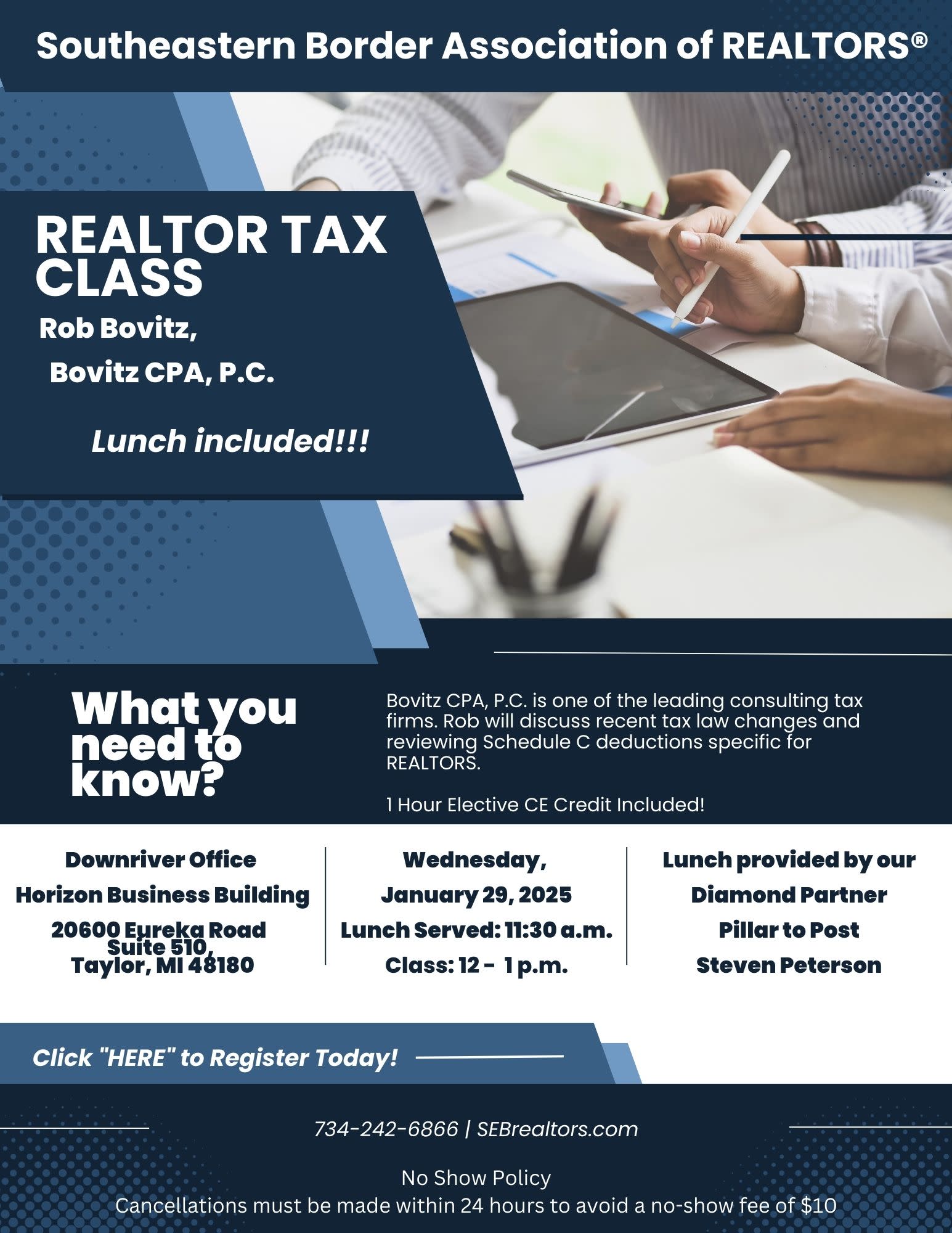 Tax Professional REALTOR® Class with Rob Bovitz, Bovitz CPA, P.C. Class includes 1-Hour Elective CE Credit!