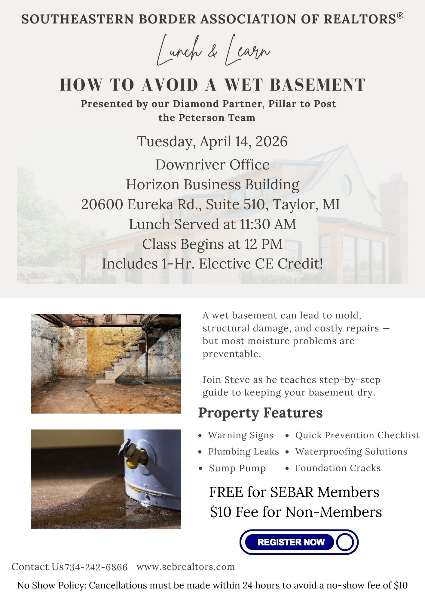Lunch & Learn - How To Avoid a Wet Basement (Downriver)