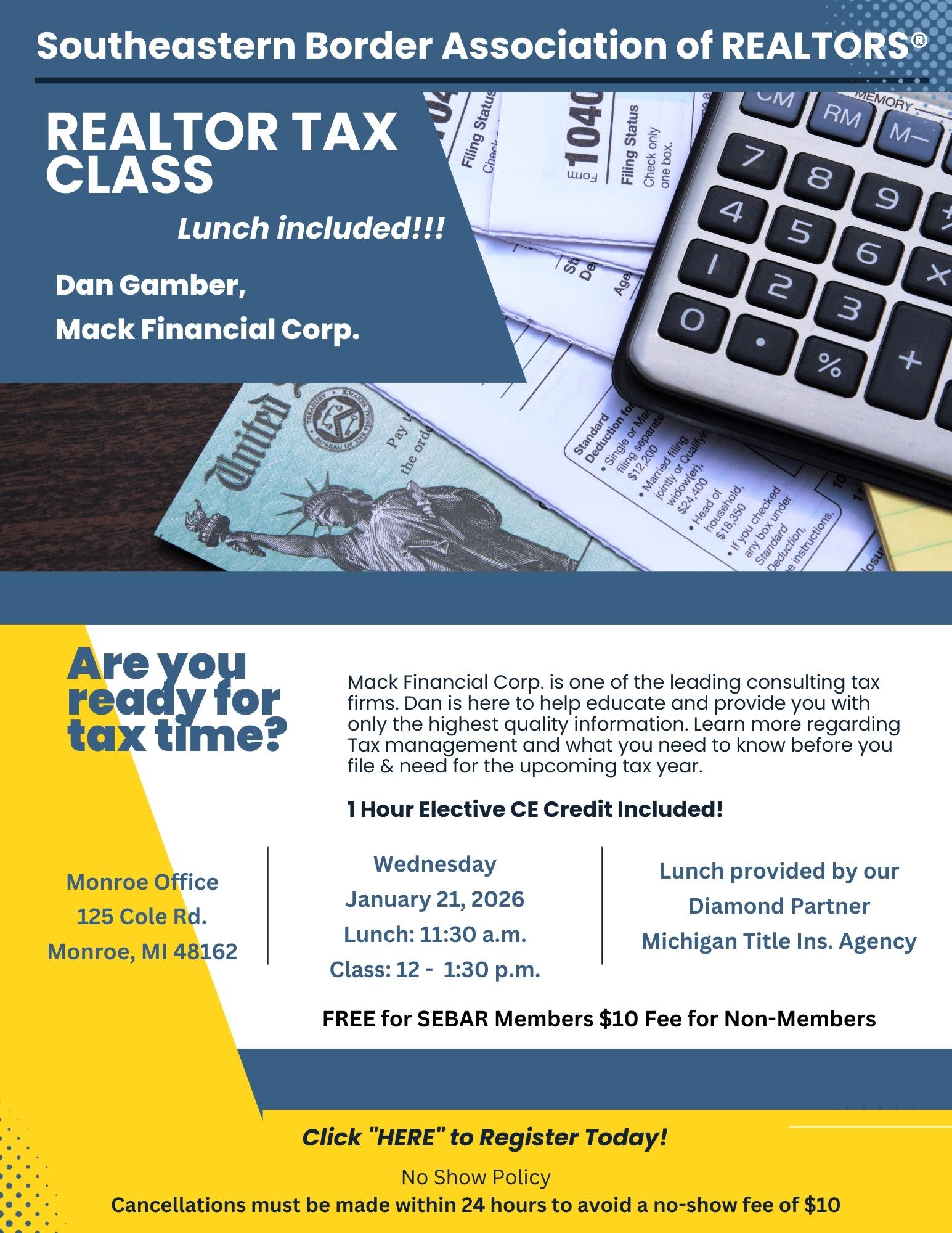 Lunch & Learn - REALTOR® Tax Class - Includes 1-HR Elective CE Credit! (Monroe Office)